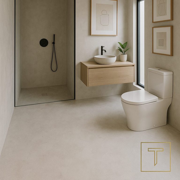 A smooth & clouded microcement finish that blends tones beautifully for a  timeless, elegant & contemporary feel.